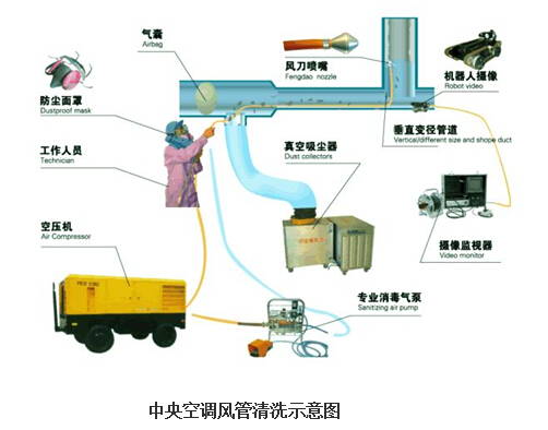 中央空調(diào)清洗:即對中央空調(diào)系統(tǒng)整體進行清洗除塵、除舊、消菌殺毒,避免造成室內(nèi)空氣污染,提高制冷效果,同時延長中央空調(diào)各部件的壽命。中央空調(diào)清洗范圍包括:通風管道、風機盤管、主機、水系統(tǒng)、風柜、冷卻塔清洗等。